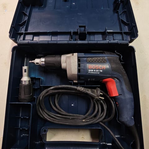 Skrumaskin med magasin for rask platemontering av f.eks. gipsplater. Maskin selges solo inkludert magasinforsats.
