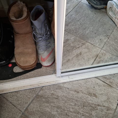 Hvit skyvedør med flere glassvinduer.