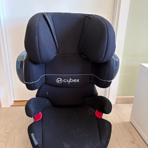 Sort bilsete til barn fra 15 kg. Setet festes med isofix i bilen.