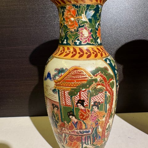 Nydelig nummerert vase av typen Satsuma-keramikk. Den er nummerert under med tallet 29