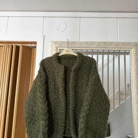 Vorinjakke fra Strikkeland! Strikket med dobbelt tråd mohair lys beige farge!.Størrelse S .