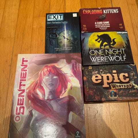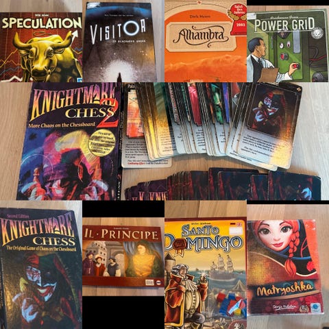Visionary Brettspill med brikker og spilleregler inkludert. Spillet er designet for flere spillere og inneholder ulike komponenter for å spille.
