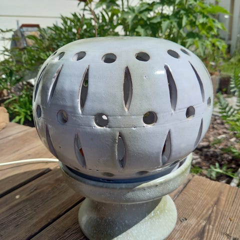 Vakker vintage oljelampe i keramikk.