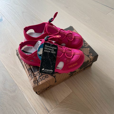 Viking Sandvika tursandaler str. 35 til salgs. Helt nye, med lapp i eske. Gir god ventilasjon kombinert med god støtte og beskyttelse. Vaskbare i maskin på 30 grader.