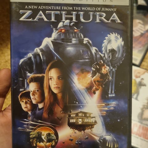 Zathura DVD film i norsk utgave. Inneholder filmen Zathura med norsk tekst eller tale. DVD-en leveres i standard plastomslag med cover og baksideinformasjon. Pa