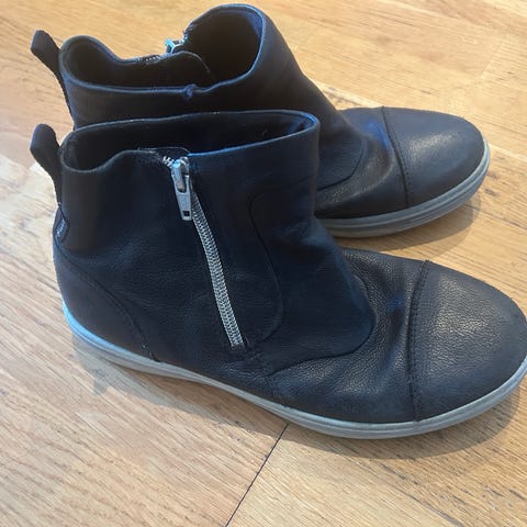 ECCO støvler i størrelse 38, farge gråsvart. Designet for komfort og funksjonalitet, egnet for daglig bruk. Meget pent brukt på noen få turer. Stor i størrelsen.