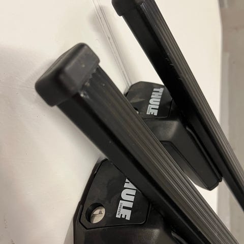 Fungerer kjempebra for skiboks så den ligger lavt på taket. Selges pga bytte av bil og disse dessverre ikke passet.