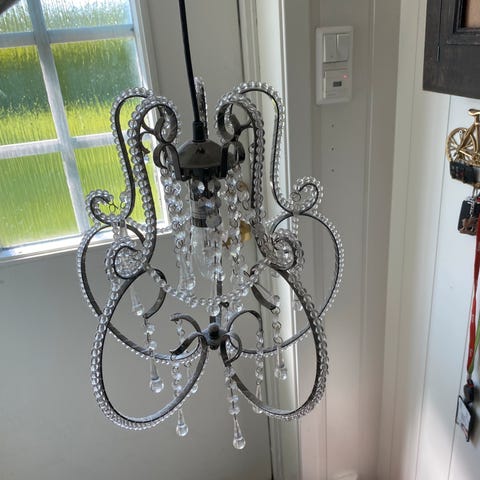 Ubrukt pendellampe i esken med bruksanvisning. Grønn matt farge,hvit inni.