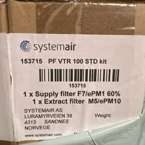 A1BE2K1 gassfilter til bruk med SR 500/ SR 500 EX-vifte.