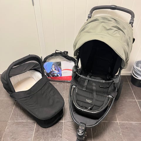 Emmaljunga barnevogn med mulighet for søskenvogn-bruk.