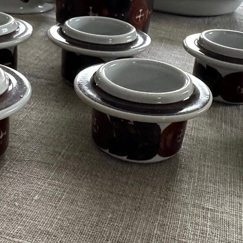 Laget i Finland. Designet av Ulla Procopé på 1960-tallet. 6 stk. Selges for 100 kr pr stk