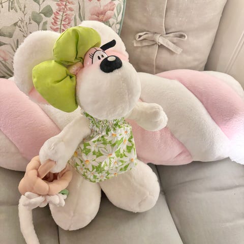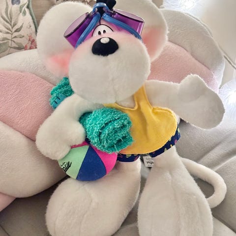Bamsen er fra slutten av 90-tallet/starten av 2000. Den har veldig svake roser i kinnene, men det er der. Den en har også hvite øyelokk i kontrast til nyere Diddl bamser som har beige-rosa øyelokk.