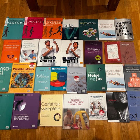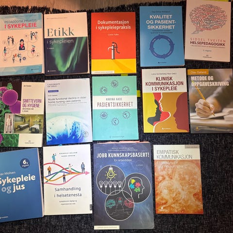 Selger 29 bøker sykepleierbøker fra bachelor i sykepleie. Alle er pent brukt og uten skader. Kan selges samlet eller enkeltvis. Perfekt for deg som går eller skal begynne på sykepleierutdanningen!