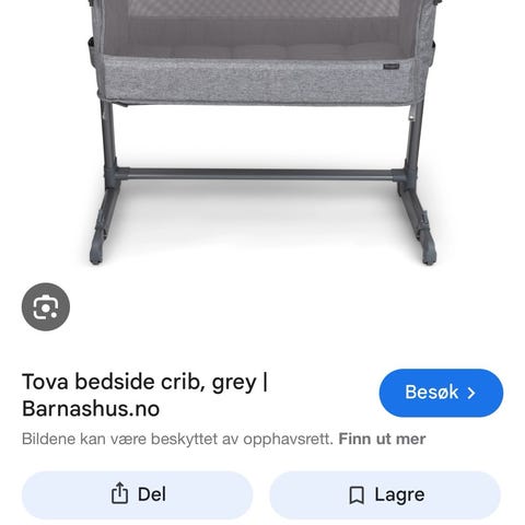 Som ny og lite brukt. Har for det meste bare stått på soverommet, da vi raskt gikk over til samsoving. To laken kan følge med om ønskelig. Må hentes .