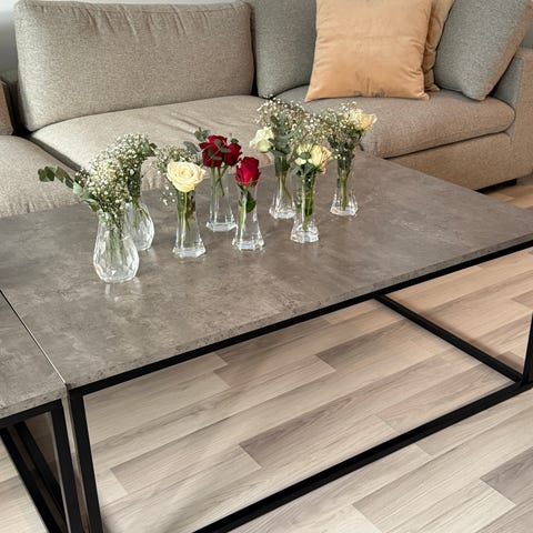 Selger et Dokkedal sofabord fra Jysk for 200,-.