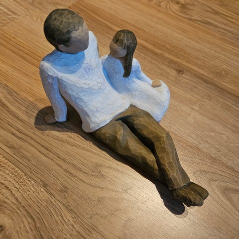 Willow Tree My New Baby figur som viser et barn som holder en baby. Originalpris 350kr. Kan hentes eller sendes på kjøpers regning.