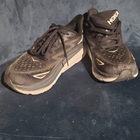 Hoka Clifton 10 Wide løpesko i svart farge, størrelse 39 1/3. Designet for løping med demping og støtte tilpasset denne aktiviteten. Skoene er kjøpt høst 25, men nesten ikke brukt da de er for små for meg.