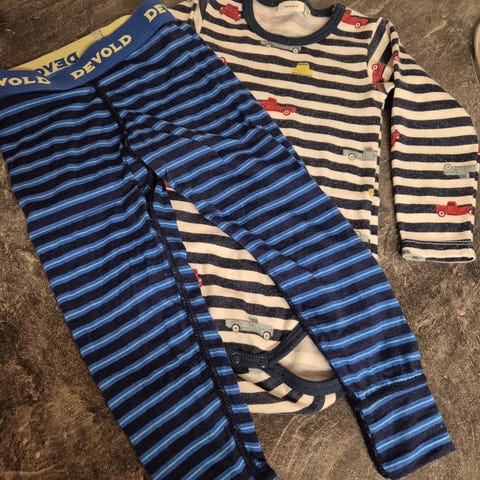 Devold ullundertøy bukser størrelse 92, til gutt. Buksene er i fin stand uten vesentlige bruksmerker/ slitasje. Et lite hull på den grå buksen som jeg har reparert (se bilde)