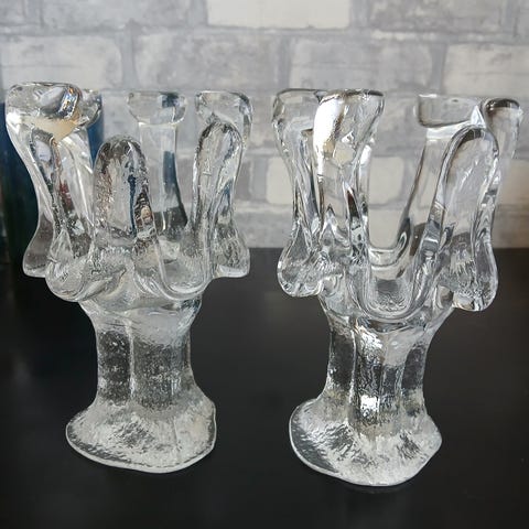 2 nydelige retro "Trekløver" krystalllysestaker fra Randsfjord Glassverk