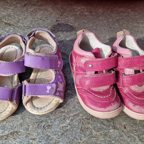 Selger to par barnesko i mokka, størrelse 23. De brune er kun brukt et par ganger, de rosa har litt mer bruksslitasje.