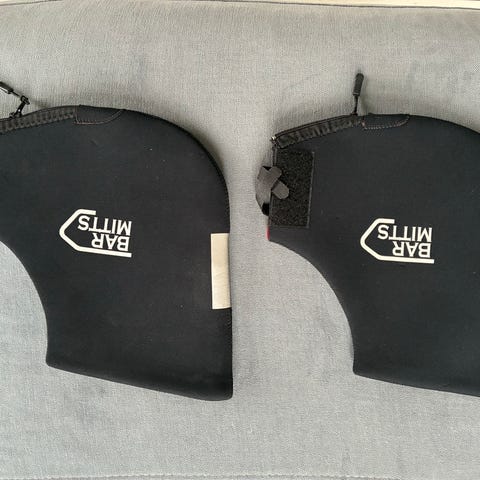 Nesten ikke brukt – kun montert og testet på 2–3 turer. Selges da jeg foretrekker tykke hansker fremfor muffer. Perfekt til vintersykling og pendling med flatt styre!