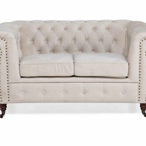 Chesterfield sofa og lenestol i beige fløyel/stoff