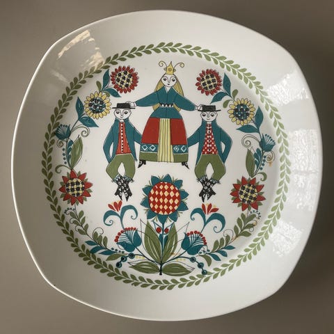En souvenir-platte med Fløybanen i Bergen som motiv.