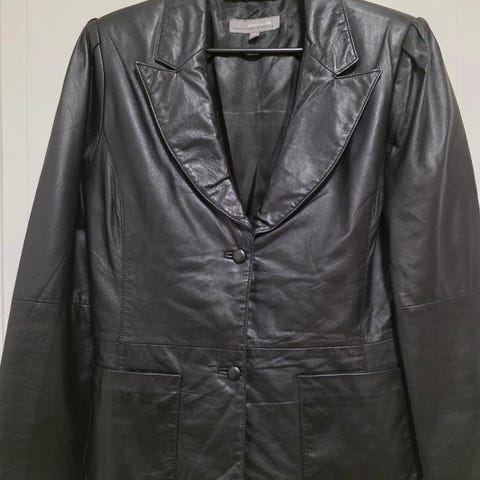 Myk og fin skinnjakke i ekte goat leather (geiteskinn) fra Lindon NewChapter. Str 38, oransje og lite brukt og i god stand.