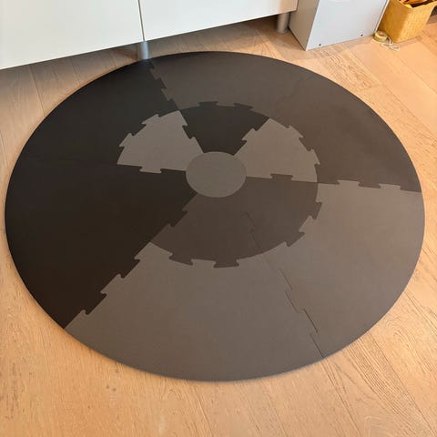 Mer info om matten her: https://www.mimmis.no/sebra-lekegulv-powder-blue