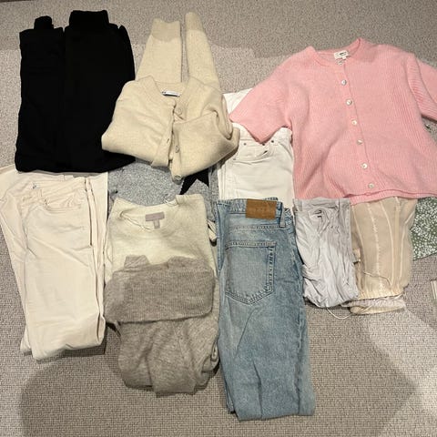 Klespakke til dame, noe er nytt og ellers pent brukt. Mest klær i størrelse S, men noe er også i M og XS.