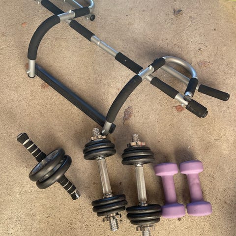 Ulike apparater til å trene styrke selges da de ikke er i bruk.