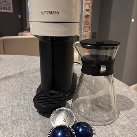 Vært regelmessig i bruk, er enkel og gir gode kaffekopper. Noen kapsler kan følge med.
