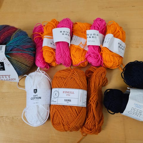 Sandnes Garn Merinoull garn i 50 grams nøster. Garnet er i fargene rosa farge nr 4715 9 nøster og hvit farge 1002 1 nøste. Passer til strikke- og hekleprosjekter.