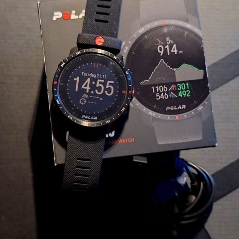 Pent brukt polar grit x pro titan! Trenings- og friluftsklokke selges. Selges med H10 ekstern pulssensor og pulsbelte, lader og endel ekstra reimer. Original eske medfølger også.