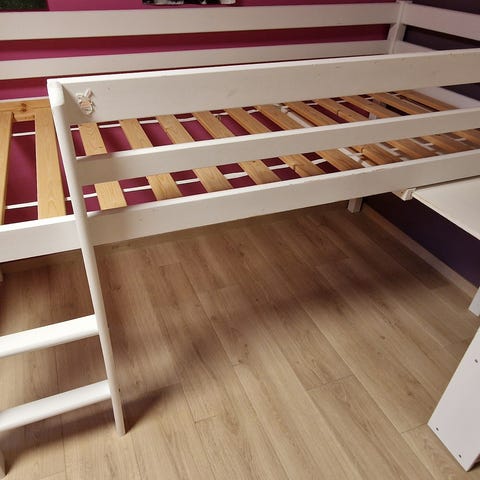Alba halvhøy seng med skrivepult og en kommode som går under sengen.Pent brukt av 1 barn. #køyeseng