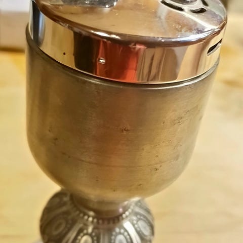 Vintage blomsterspreder, også kjent som en potpurrikrukke, i porselen med et gjennombrutt lokk. Den har håndmalt blomsterdekor.