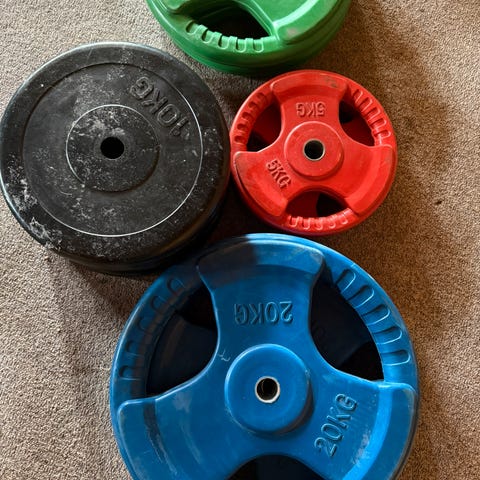 Stang på 155 cm selges med totalt 106 kg. 25mm diameter. Noe plast og noe jern. Må hentes!