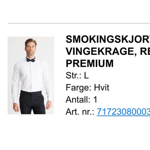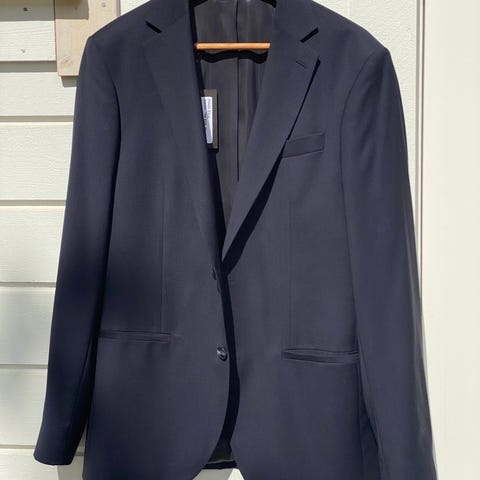 Det følger med jakke, bukse, skjorte og bukseseler. Ny pris var 5500 kjøpt på Herremagasinet i Oslo. Kan selge med sko hvis ønskelig for 500.