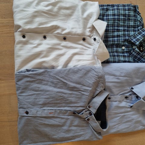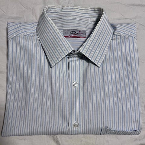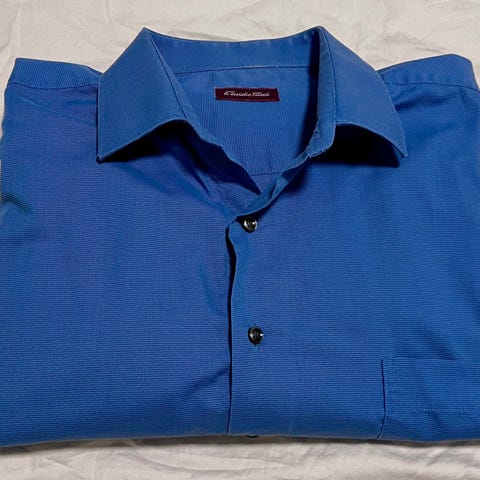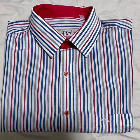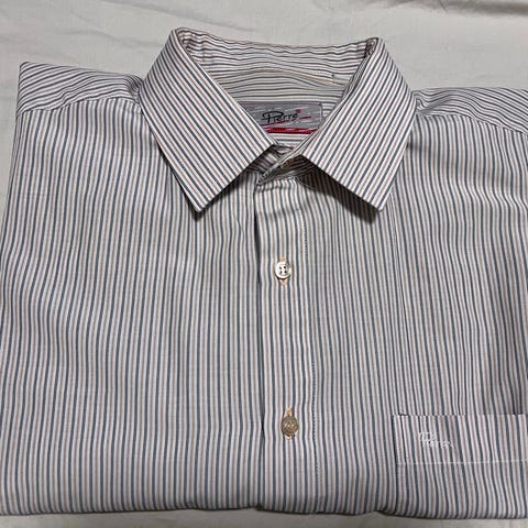 Herreskjorte i størrelse XL fra Pelle Petterson, blårutet med blåfarger og hvit.