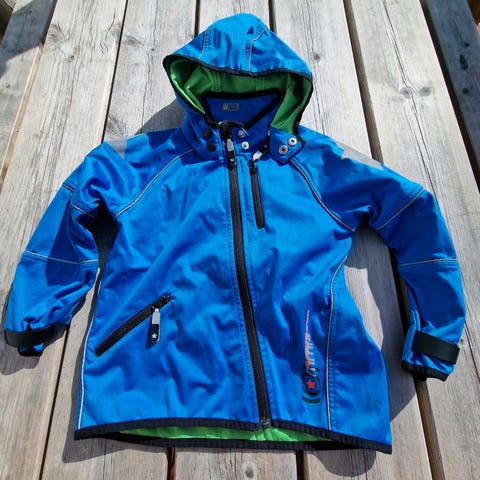 Molo softshell-jakken har en lett høy-lav effekt og det er ribbestrikkede slisser på sidene av midjeåpningen. Softshell-jakken har en stor reflekterende stjerne nederst på ryggen.