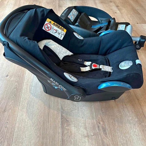 Bilstol og base med Isofix fra Maxi Cosi. Solskjerming følger med og Voksi-pose.