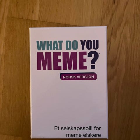 What Do You Meme? Brettspill, et selskapsspill designet for meme-entusiaster. Spillet inkluderer kort og instruksjoner som lar spillere lage morsomme memes ved å kombinere bilder og tekst. Passer for voksne og ungdommer i sosiale sammenkomster.