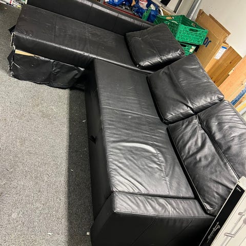 Skinn sofa som er godt brukt! Må hentes den 3. januar.