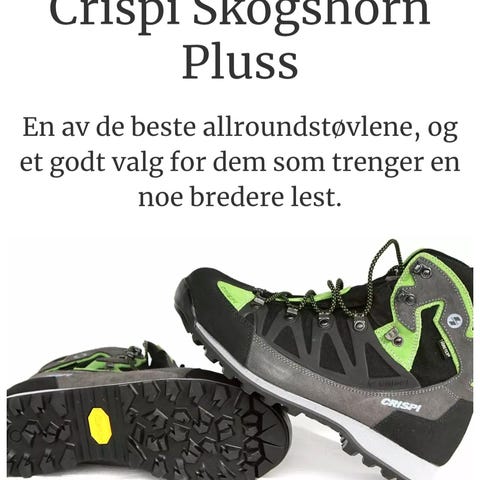Crispi Futura Pro XP sko i størrelse 44. Kun prøvd på, men passer dessverre ikke. Kjøpt på Brukås sport.