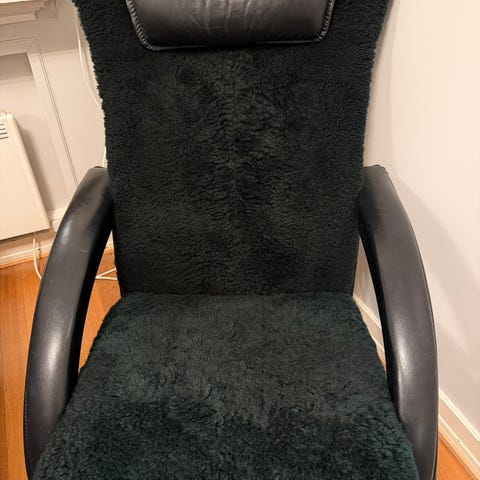 Meget pen Brunstad Delta stol selges . Brunt fåreskinn , med krakk / skammel / pall / fotskammel.