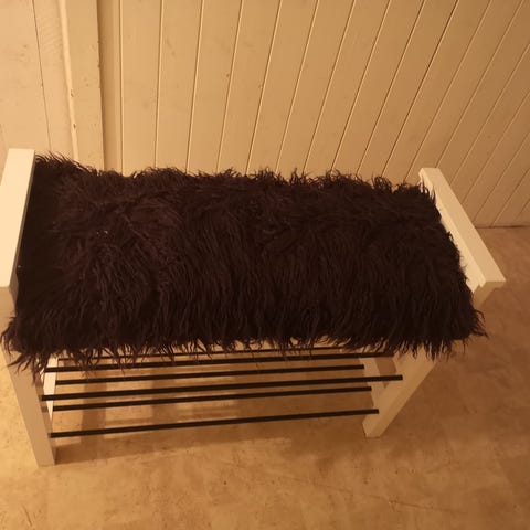 Ny og ubrukt skohylle / benk med skohylle B70 H45 i svart og lys grå farge. Liten, smart og dekorativ benk