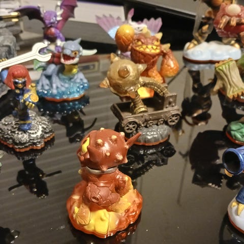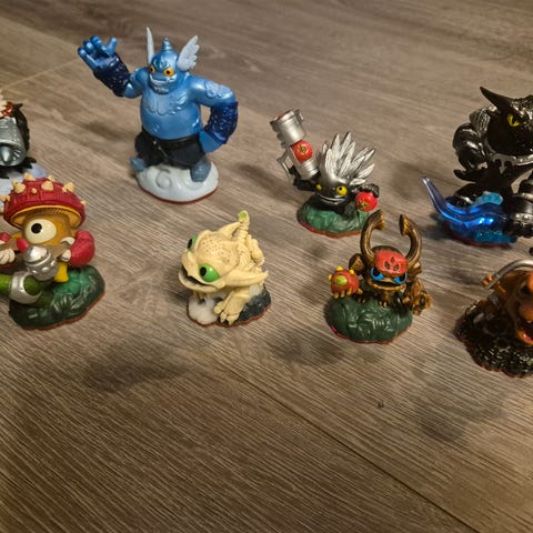 Samling av Skylanders figurer i ulike karakterer og farger. Figurenes materiale er plast og de er designet for bruk med Skylanders spill. Passer for barn og samlere.
