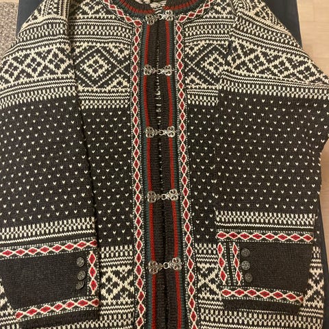 Selges for en venn . Genseren er pent brukt men har vanlig nupper som er lett å fjerne . Noen få hundehår kan forekomme siden eieren har hatt hund før .