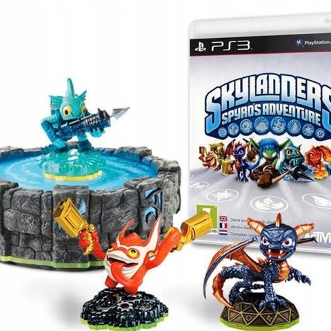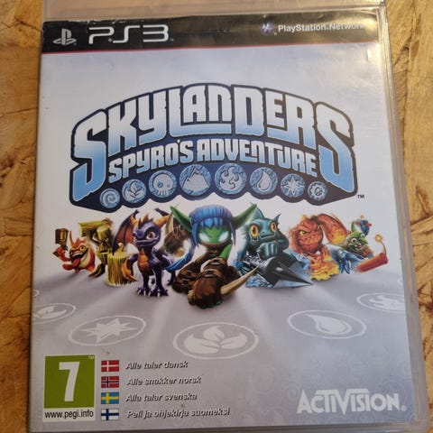 Activision Skylanders Spyro's Adventure spill for PS3 med tilhørende figurer og portal. Inkluderer spilldisk, spillomslag og tre karakterfigurer som brukes sammen med spillet.