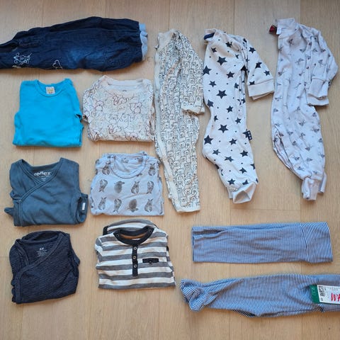 Fin klespakke i beige-farger. Alt er kjøpt nytt av meg, og er pent brukt av ett barn. Ikke noe å anmerke.